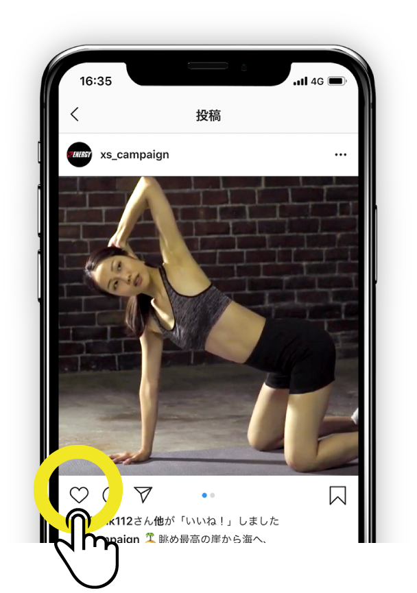 - XS™公式キャンペーンアカウントをタグ付けし、ハッシュタグ「#ボディメイクはじめました」をつけて、「美容・健康のために普段やっている運動」を撮影してInstagramに投稿してください。